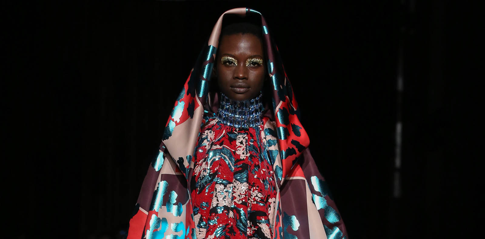 Dès l’entrée dans l’exposition, le constat est clair : l’imaginaire déployé par Josèfa Ntjam ne ressemble à aucun autre. Sans doute car cette dernière y croise des éléments ultra contemporains avec des références séculaires, dont elle montre toute la pertinence à notre époque. Dans son film inédit, l’artiste invoque ainsi plusieurs noms familiers : celui de la déesse vodoun Mami Wata, d’abord, esprit des eaux dont la puissance impressionne autant qu’elle effraie. “Elle incarne la lutte contre l’invasion coloniale et l’affirmation de la femme – elle est d’ailleurs très crainte par les hommes”, précise l’artiste, qui l’interprète vêtue d’un costume aux couleurs du feu, le visage dissimulé derrière une cagoule rouge et jaune. Quant à Saturne, dieu romain du temps et de l’agriculture, la trentenaire l’imagine plutôt sous les traits d’un trou noir, allégorie menaçante d’une forme de mélancolie contemporaine. Enfant déjà, Josèfa Ntjam écoutait tous les soirs sa mère lui raconter des légendes d’Afrique subsaharienne et notamment du Cameroun, dont elle est originaire. Captivée par les croyances occultes et tout ce qui relève de l’inaccessible – voire de l’invisible, elle commençait dès lors à mesurer l’importance des mythes dans la constitution d’une communauté, et leur rôle dans l’affirmation d’une identité, voire d’une indépendance.