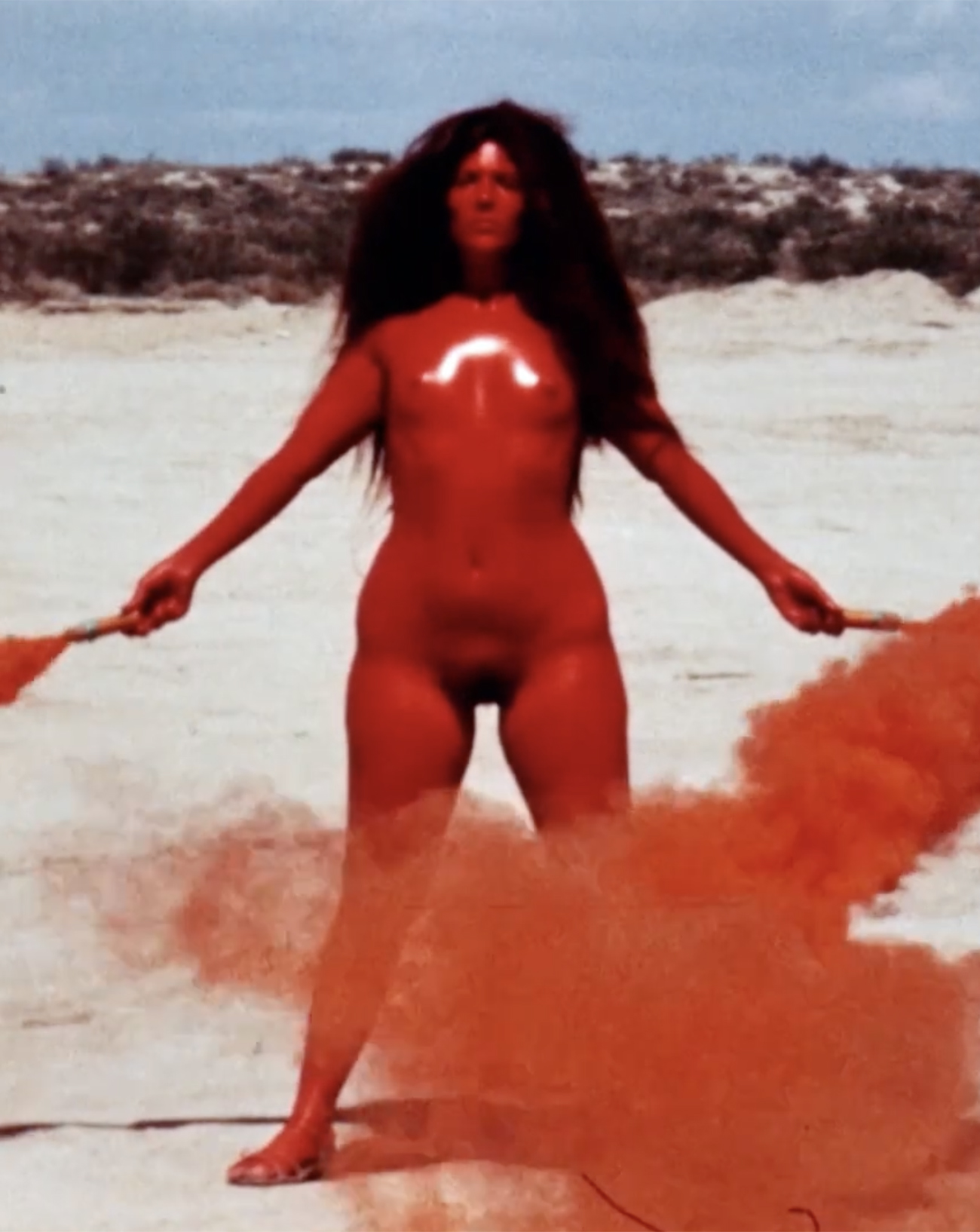 Reproduites à de multiples reprises au fil de sa carrière, au cours des années 70, ou plus récemment sur le lac de Toronto et dans la ville d’Arles, les performances de Judy Chicago seront réinventées, incluant tantôt des femmes nues recouvertes de peintures brillantes, tantôt des feux d’artifices, et poursuivent cette “féminisation” du paysage – et du monde de l’art.