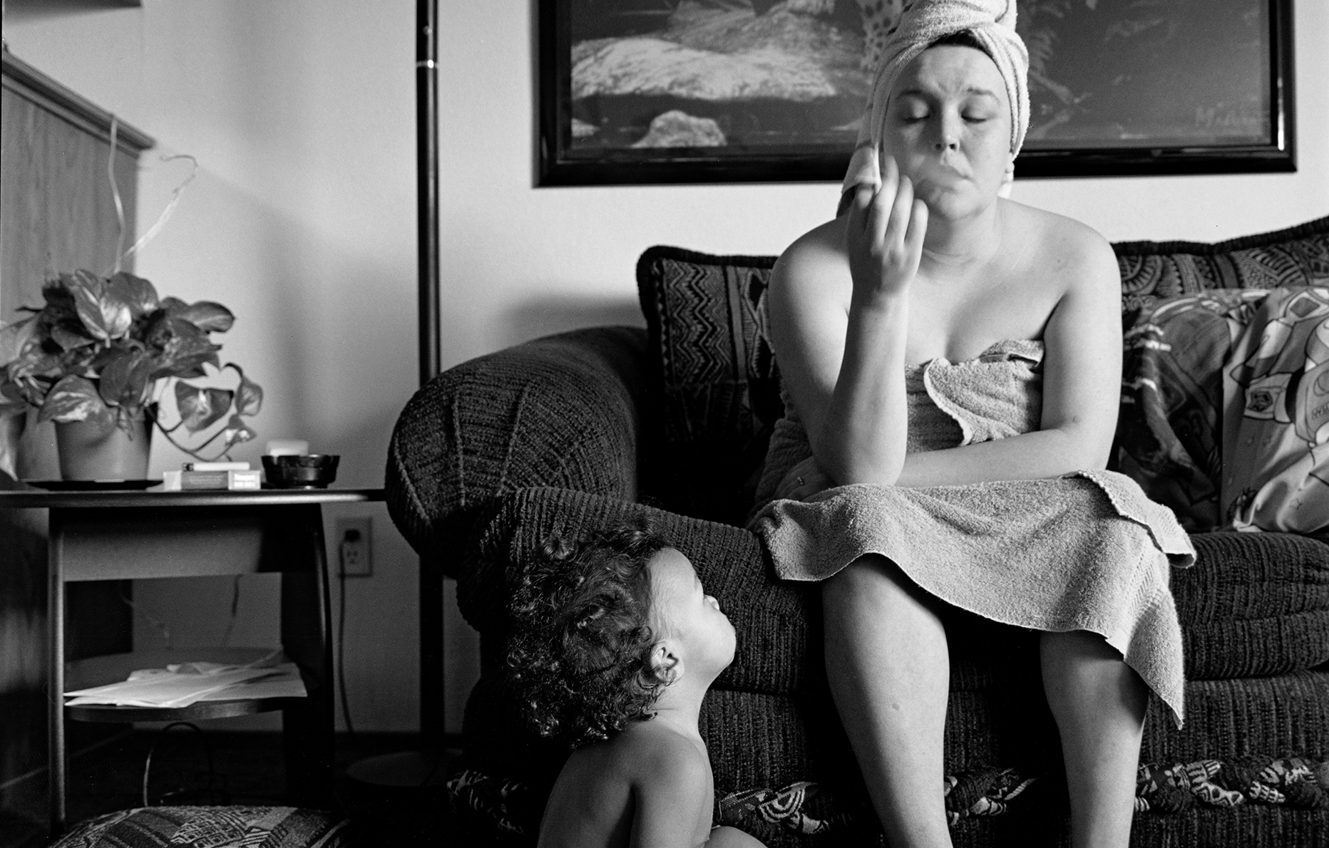 Au-delà de reporters qui capturent spontanément les visages croisés sur leur chemin ou ne rapportent que la réalité brute, Mary Ellen Mark intègre au sein de ses séries les noms et les histoires des personnes qu’elle rencontre – et avec lesquels elle tisse, pour la grande majorité, des liens. À l’image de son célèbre portrait de la famille Damm qu’elle réalise en 1987 dans le cadre d’une commande sur les familles sans abri, elle décide finalement de la résumer à ses quatre membres – Crissy (6 ans), Jesse (4 ans), leur mère Linda (27 ans) et leur beau-père Dean (33 ans)–, dont elle suit le quotidien sur dix jours, des journées passées dans leur voiture aux nuits d’angoisse dans les motels. Dans les livres qu’elle publie comme dans les magazines avec lesquels elle collabore, la photographe sort ses sujets de l’anonymat en leur offrant une identité propre qui ajoute à la force tragique de ses clichés.