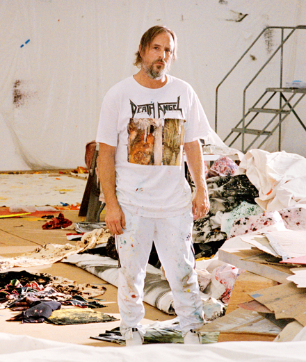 Ruby grew up in rural Pennsylvania, where building and construction were the main source of income for his family and many others around him. That industrial heritage emerges in his work. “There’s a directness to materials that I appreciate – people can immediately recognize and grasp them. Materials have a language within them that is accessible to a wide audience; people have a certain feeling or understanding of them that transcends their position in an artwork.” A sense of precarity and entropy is fundamental in his process: “I still love chance. It’s potentially one of the last frontiers for me. When chance happens, and it’s positive, it’s kind of magical. Having worked on art for so many years, things can become static,” he continues. That desire for change has also influenced his shift into other creative worlds. For those outside of the art world, Sterling Ruby – who looks like a sexy Axel Rose in his Guns N’ Roses era – has become a serious name in fashion.