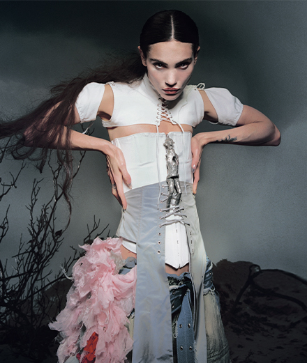 Lalita’s visceral relationship with the voice also comes through in her way of embodying it in images. Since childhood, she has felt music in her body: from the maternal living room, where she used to perform before an imaginary audience, to her stints as a model in New York or the years she spent dancing ballet, movement has allowed her to give form to the fire within her. A good example was her flamboyant 2017 performance Madre, which she wrote as part of her studies – a mix of fashion show, film projection and theatre, it caught the attention of her future label, Young. Her search for expressivity can also be seen in the way she stages herself on the cover of her EP, in a tight black dress that turns her into a spectral shadow, in contrast to the white, ethereal outfits she also likes to dress up in, which make of her an angel or a white lady from a gothic novel. Naturally, she develops this side in her videos too: for Tenia Razón, she appears with a group of women whose trance-like movements recall the choreography of Pina Bausch, while for Pisoteo she gesticulates alone like an animal guided by primal instinct.