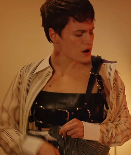 An acrobat on the roof tops of New York in Damn, dis moi then a dancer in a deserted car park in Doesn't Matter (Voleur de soleil), Christine & the Queens slips into the skin of an armada of characters. In her latest video for the track 5 dollars, the darling of French music is alone with the camera as an S&M prostitute, praising love that can be brought. Made once again by Colin Solal Cardo, the routine follows her getting ready, bouncing between her sensuality and her salient virility. Among the shots of her under the shower and in front of the mirror, we notice on the body of the person who now likes to be called Chris, scratch marks and bruises before she adorns herself with a leather harness she hides under a tailored suit – her trademark look.