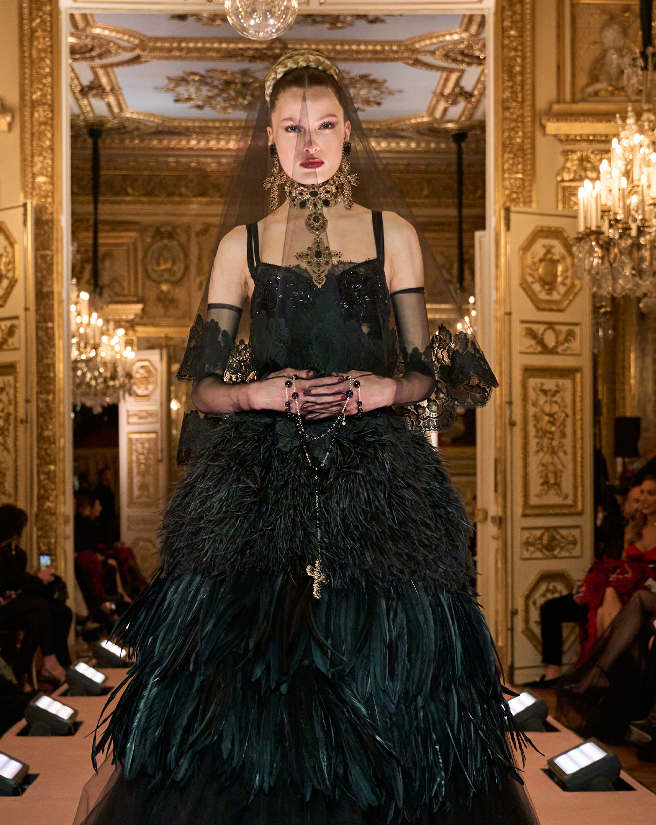 Pour Aline Asmar d’Amman, le Jules Verne évoque incontestablement le Paris du début du XXe siècle et les photos argentiques prises à cette époque. Ainsi, elle en extrait des références à l’industrialisation mais également à la haute couture et à l’Art déco, alors en plein épanouissement : un vestibule qui renvoie au caractère brut du monument avec son noir mat et ses bustes de Jules Verne et Gustave Eiffel; une entrée au plafond orageux qui cite les peintures “Eiffel Tower” de Basquiat et Warhol, tandis que celui de la salle peint à la main orné de moulures ovales ou rectangulaires d’un blanc nacré rappelle les nuages. Les dossiers des chaises évoquent les cannages de Dior, des pieds de table ou les murs des alcôves font revivre les plissés des robes Lanvin, certains détails s’inspirent volontairement des engrenages et structures de la Dame de Fer tandis que la décoration générale rappelle le clichés en noir et blanc de l’immense Karl Lagerfeld. L’architecte d’intérieur libanaise a fait appel aux meilleurs artisans des arts décoratifs français pour exalter l’élégance et la féminité intemporelles du lieu avec ses moquettes, velours, marbres, onyx et mobilier sur mesure aux lignes contemporaines décliné en gris perle. L’ambiance est intimiste et raffinée et offre tout le loisir de profiter de la vue panoramique exceptionnelle ainsi que des créations culinaires de Frédéric Anton.