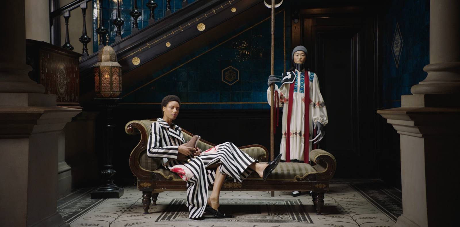 Le verre, laqué de noir et rayé d’or appliqué à la feuille, rappelle la marinière, pièce iconique de Balmain et souvent retravaillé par Olivier Rousteing. Le code noir et or de la maison de couture est aussi décliné sur le logo de la bougie, le blason Cire Trudon venant s’imprimer à l’or chaud sur un écusson de velours noir.