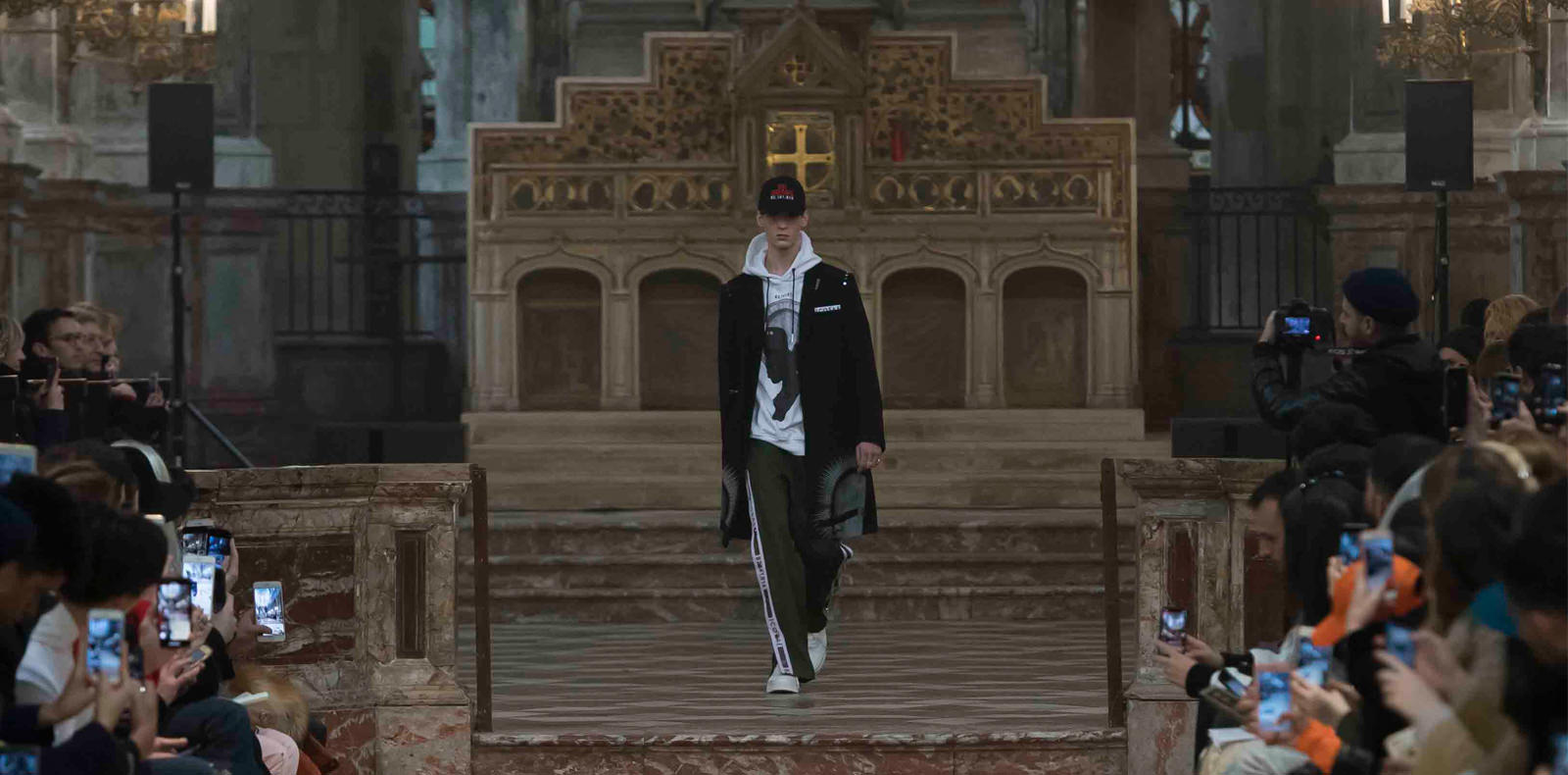 Dans cette collection, Miu Miu introduit également une nouvelle paire de sneakers sous la forme d’une collaboration avec l’équipementier américain New Balance. Pour l’occasion le label italien de Miuccia Prada offre sa version du modèle New Balance 574 datant des années 1980 et décline la basket en trois couleurs, blanc, kaki et bleu, avec des bords francs qui mettant l’accent sur la construction par la déconstruction.
