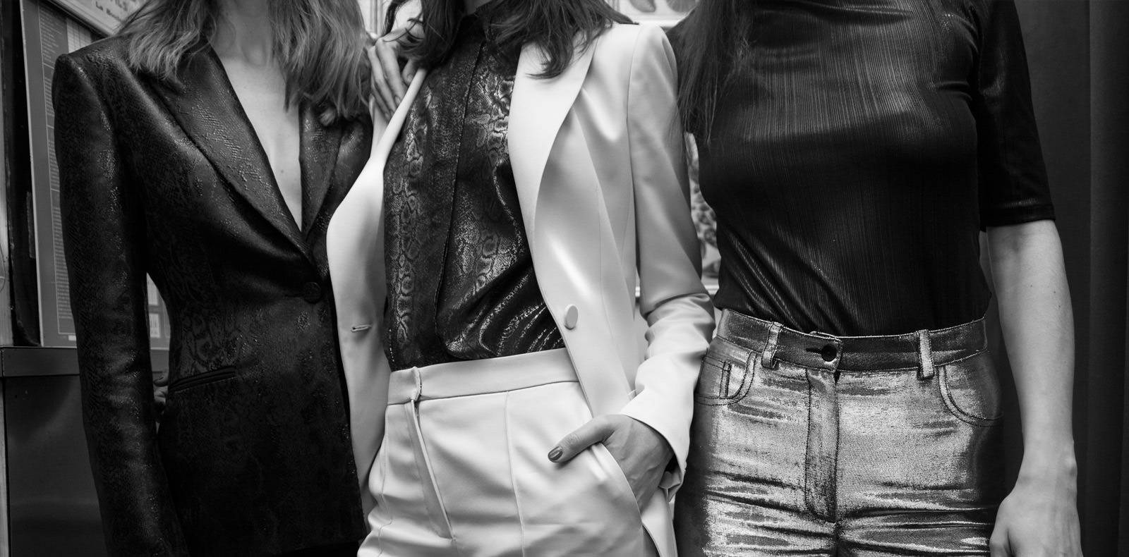 Là où dans l’uniforme classique, les rameaux d’olivier restent proches des extrémités de la veste et forment sur tout leur long des bandes régulières, la maison a imaginé une broderie arborescente qui, à l’image de l’olivier, se déploie de la base du vêtement jusqu’à son col. Les manches comme le milieu dos de la veste suivent également cette croissance organique, où le volume des feuilles s’affine vers le haut. Une manière élégante de rehausser la sobriété du noir et du blanc de l’ensemble : le pantalon tuxedo, plus discret, révèle aussi sur ses coutures latérales la présence d’olives et de feuilles, qui monte du pied jusqu’à la taille.