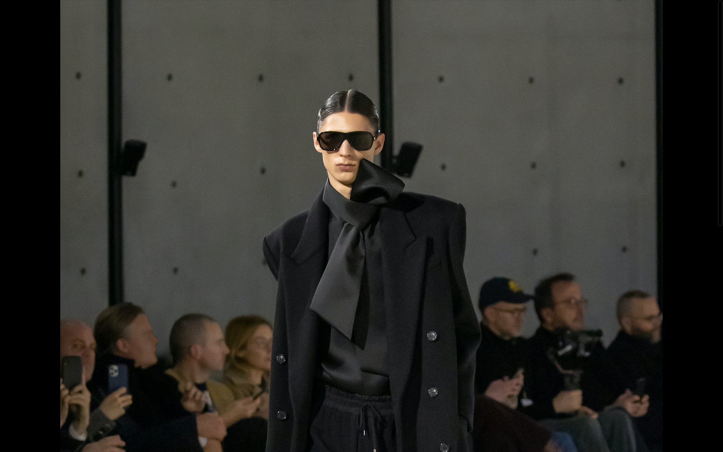 Deux mois plus tard, Hood By Air revient avec un vestiaire plus lumineux s’inscrivant dans la continuité du précédent. Intitulée “Veteran”, cette précollection propose des ensembles qui rappellent l’ancrage historique de Hood By Air dans le streetwear depuis sa création en 2006 : de nombreux hoodies oversize, des pulls et joggings en molleton, bermudas larges et tee-shirts évoluent dans les tonalités jaunes, bleu ciel, blanches et noires. Fonctionnelle et protectrice, cette collection s’enrichit également de pièces plus utilitaires à l’instar de parkas, blousons, pantalons extra-longs et bermudas larges agrémentés de nombreux détails fonctionnels comme des poches plaquées à rabat et zips. Shayne Oliver joue également sur l’ornementation en utilisant des écussons velcro où l’on peut lire le nom de la collection et le logo du label “HBA”, également présent sur plusieurs hauts au même titre que les inscriptions “MUSEUM”, “AWOL”, “69”, ou même l’empreinte d’une main ensanglantée en rouge sur blanc. Même dans un vestiaire d’apparence plus sobre et fonctionnel qu’à l’accoutumée, l’audace du créateur new-yorkais transparaît par petites touches : ici, on s’étonne devant des paires de chaussures pointues à talon aiguille en métal dont le design futuriste rappelle celui de baskets ultra-contemporaines. Un premier drop qui s’ensuivra sans doute de nouvelles pièces les prochains mois.
